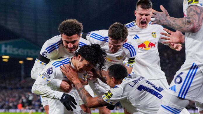 Leeds salió del descenso, con tres puntos sobre West Ham, con un partido menos, mientras que el Chelsea se queda con 24 unidades, a nueve del Arsenal, que este miércoles venció al Brentford (2-0).