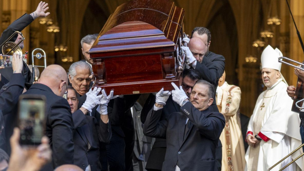 Los aplausos de sus admiradores también se escucharon en la Quinta Avenida mientras cantaban, contorneaban sus cuerpos o movían sus pies al cadencioso ritmo de la música que interpretaban integrantes de su banda y otros músicos que se unieron al tributo, antes de que el artista fuera sepultado en una ceremonia privada tras dos días de velatorio.