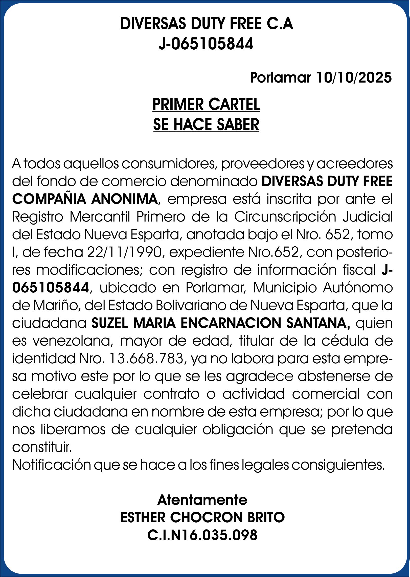 Antiguo CARTEK-DIVERSAS-DUTY-FREE-MARIA-TERESA-TAWIL-BARNOUTE-y-ABELARDO-ANTONIO-BERNITTI-TAWIL-10-10-25