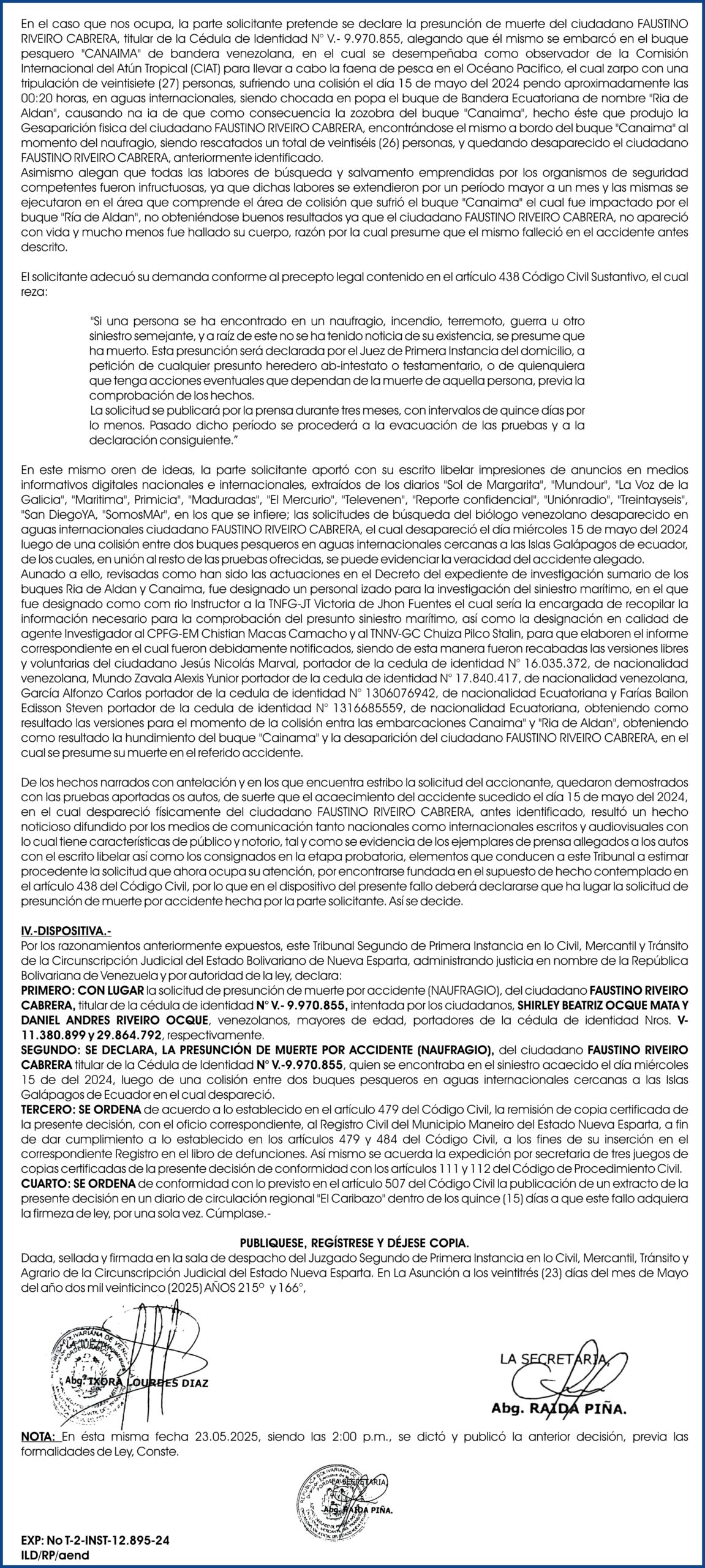 Nota de Duelo: Fallecimiento de Calixto Fortunato Morillo