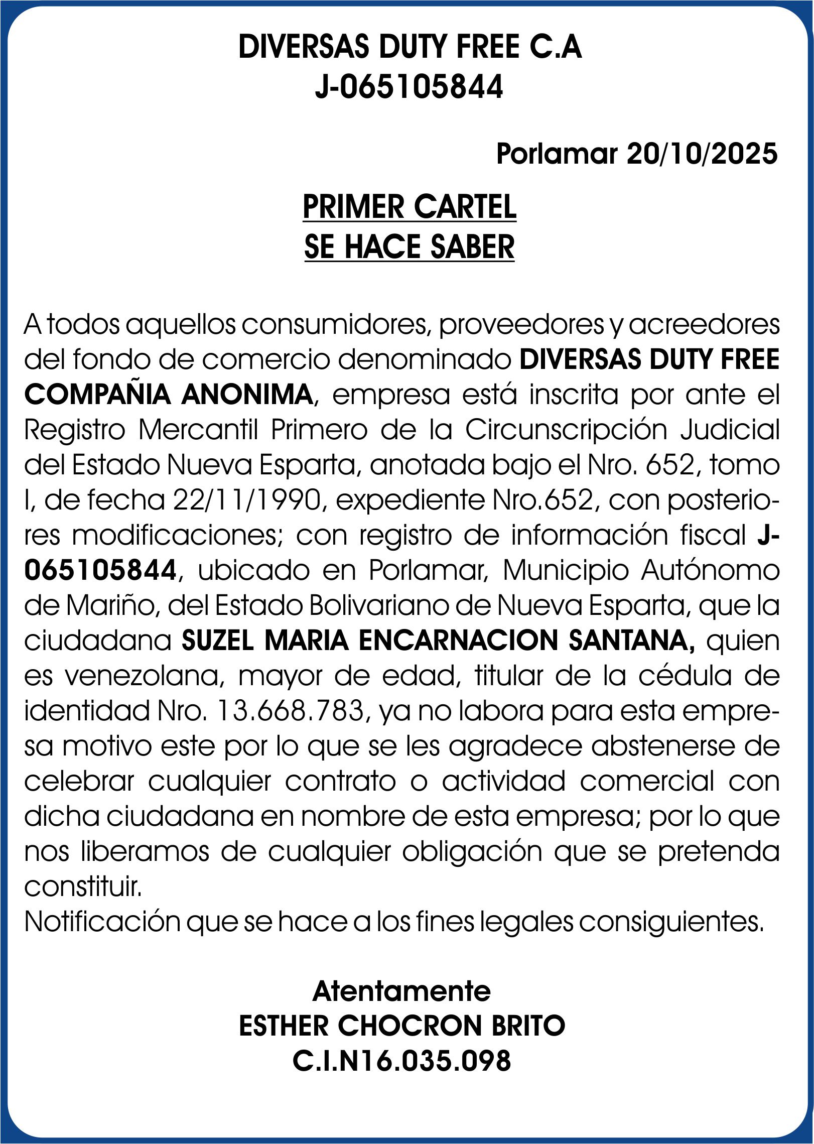 Antiguo CARTEK-DIVERSAS-DUTY-FREE-MARIA-TERESA-TAWIL-BARNOUTE-y-ABELARDO-ANTONIO-BERNOTTI-TAWIL-20-10-25