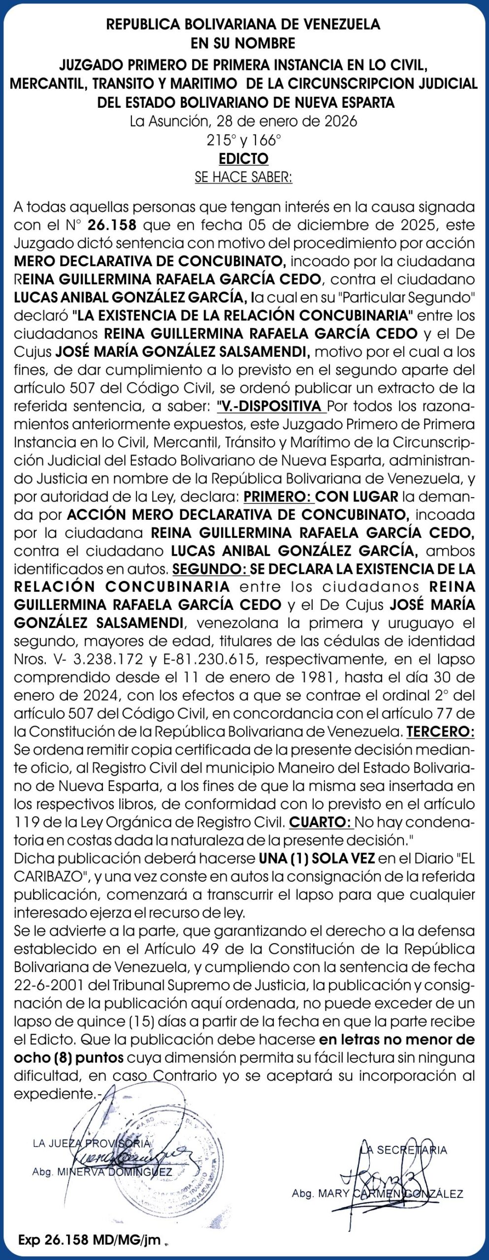 Antiguo CARTEL MANEIRO ARNALDO RAFAEL GONZALEZ REYES 09-02-26.