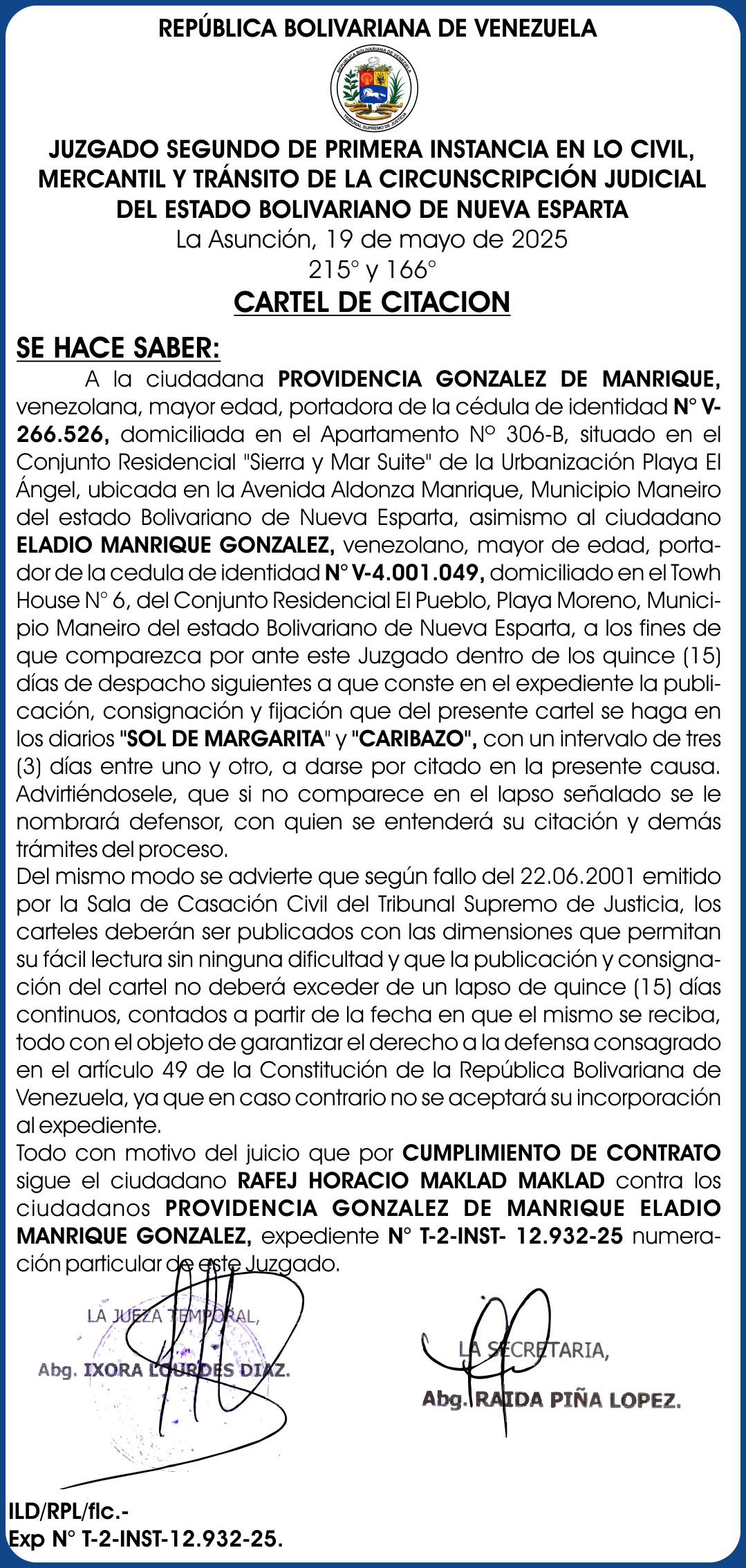 Reciente CARTEL MARGIT ROSE HUERNER 30-06-25