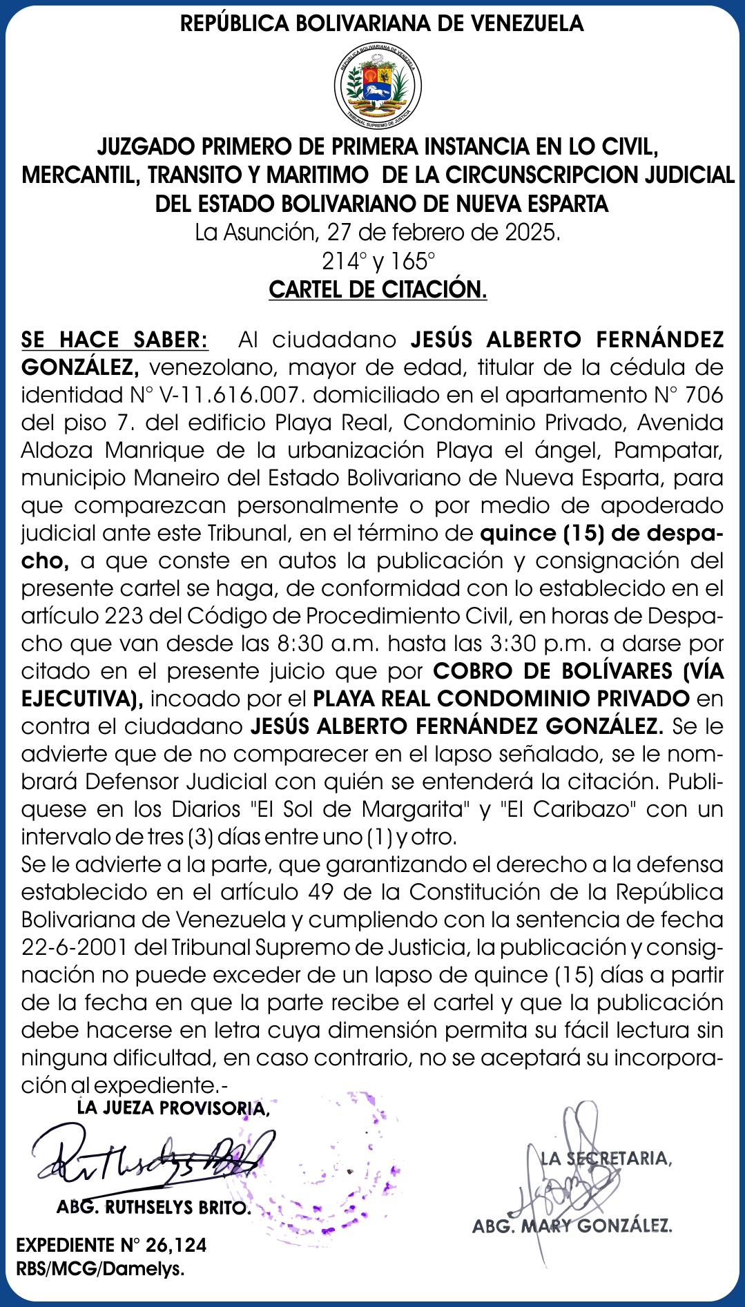 Reciente CARTEL JOSE FRONTADO 25-03-25