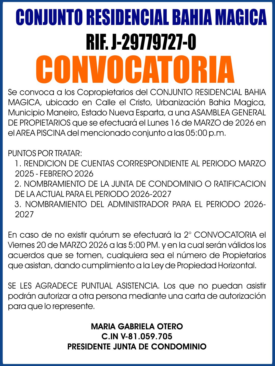 Reciente CARTEL DE NOTIFICACION- REGATA I 11-03-2026