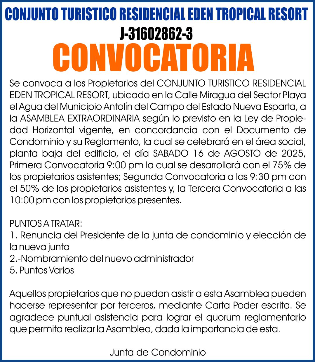 Reciente CONVOCATORIA BAHIA DE GUARAGUAO 12-08-25