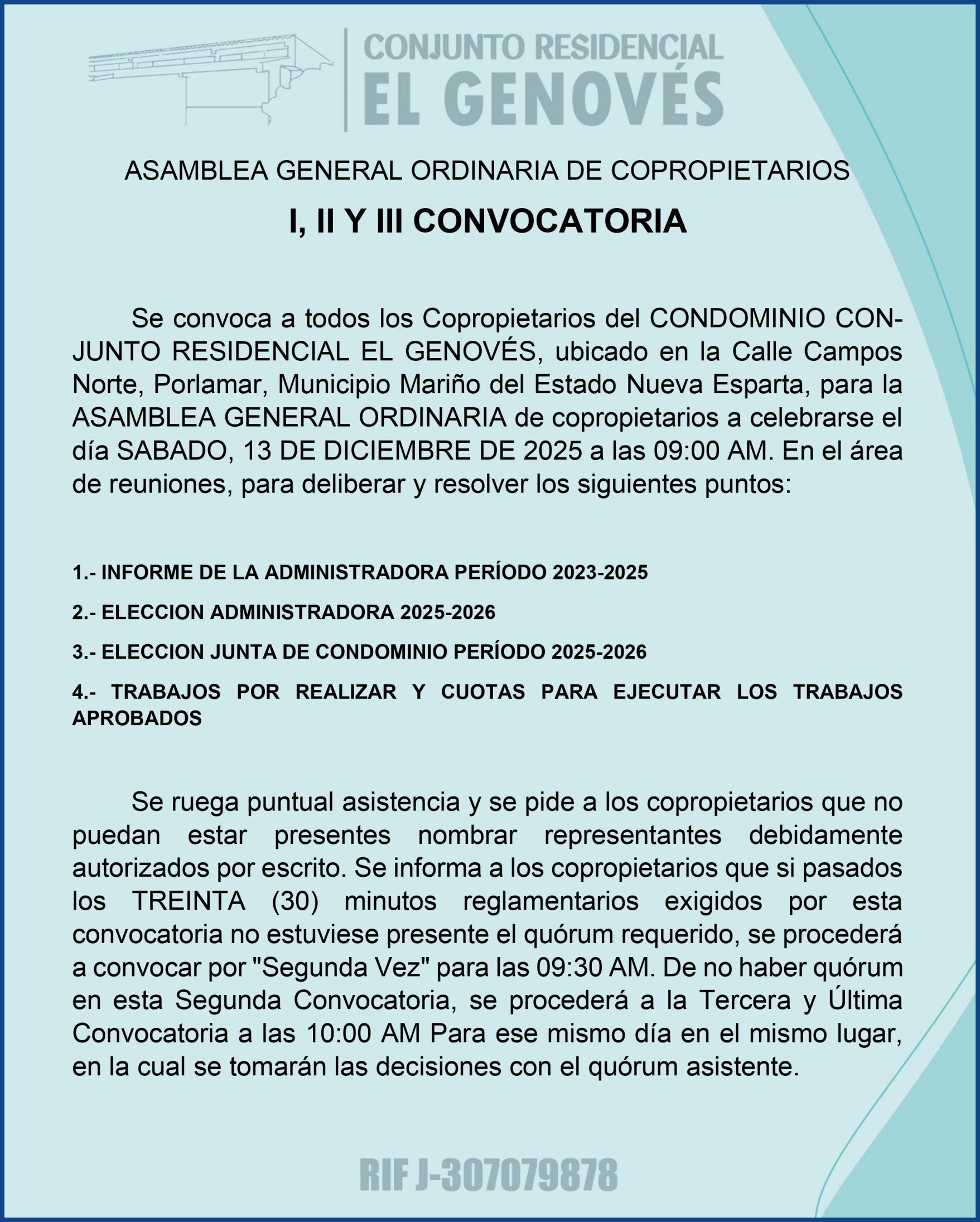Reciente CONVOCATORIA CONDOMINIO GUATACARE 05-12-2025