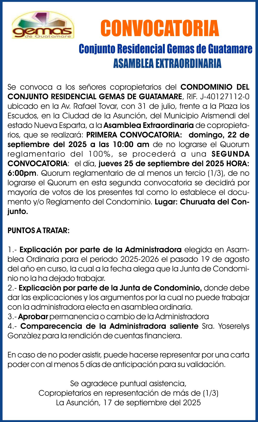 Reciente CARTEL HERNAN JOSE GAMERO RIVAS, 17-09-25.