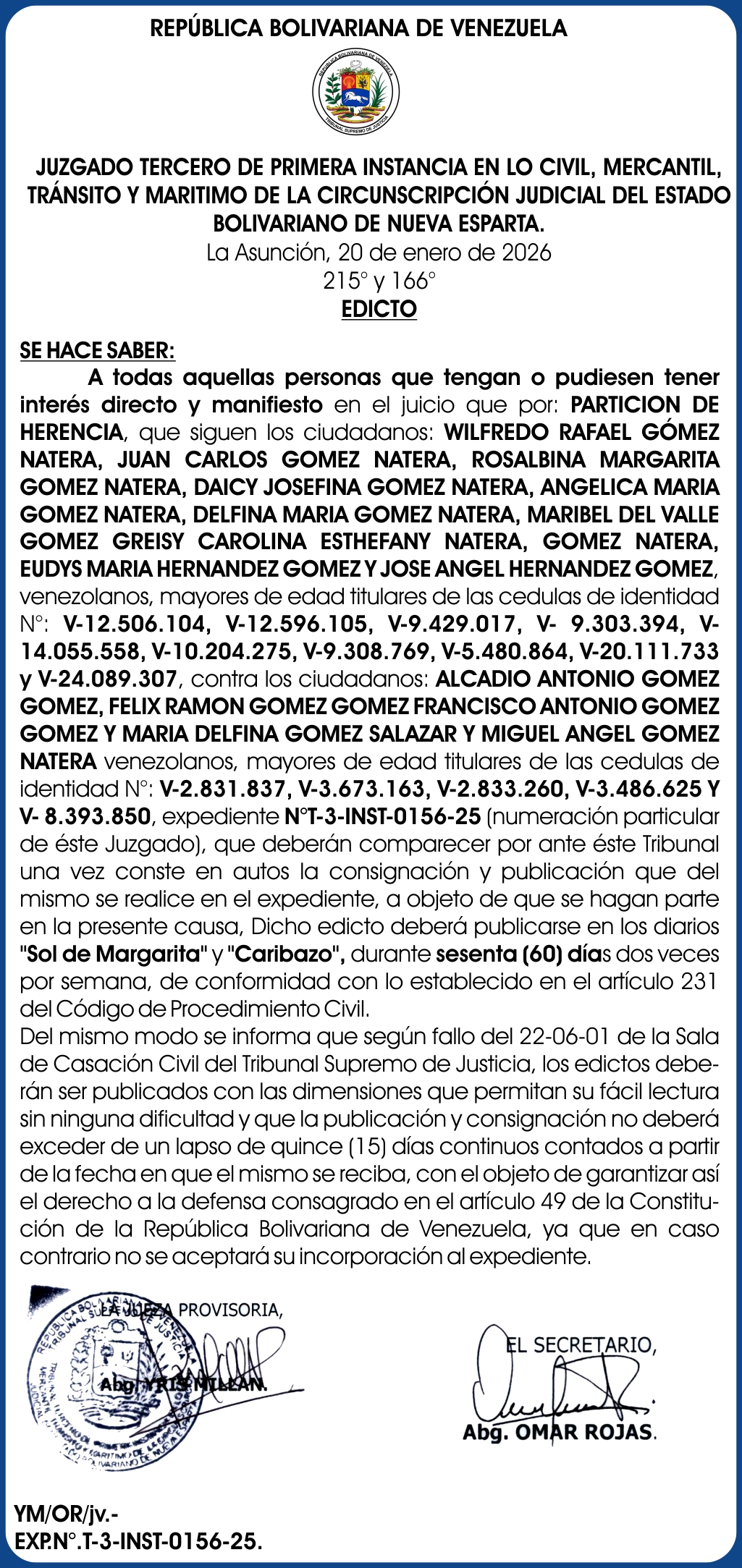 Antiguo CARTEL JOSE DANIEL PEREZ RAMIREZ 23-03-26