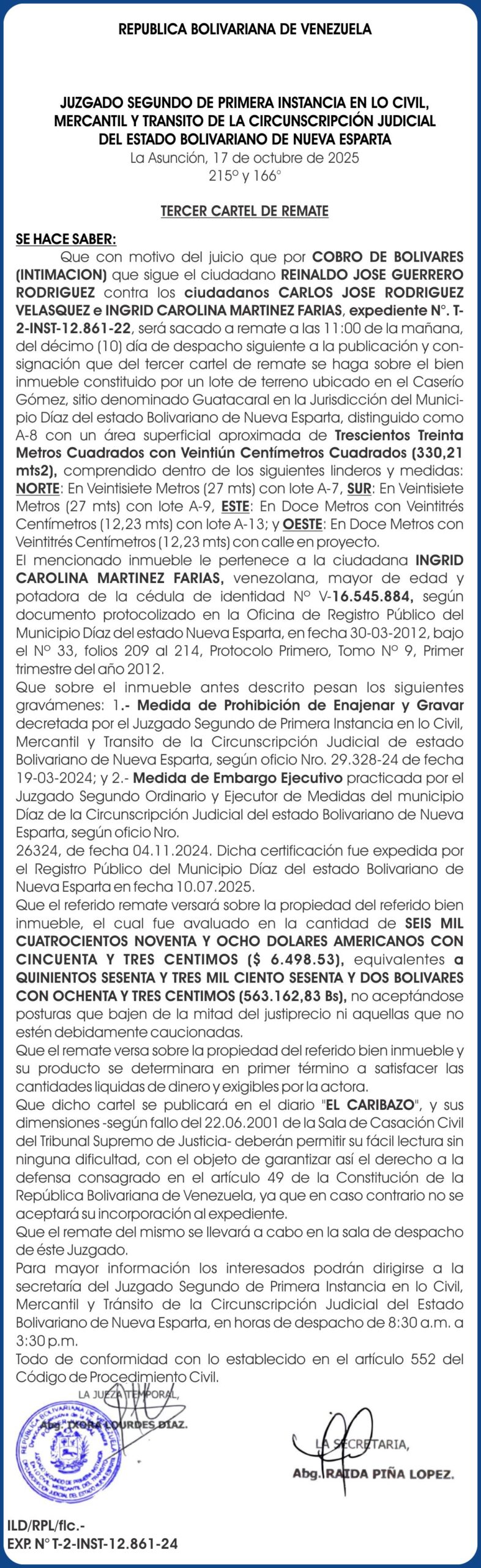 Reciente CARTEL JUAN CARLOS LUDEWING MORENO 23-10-25