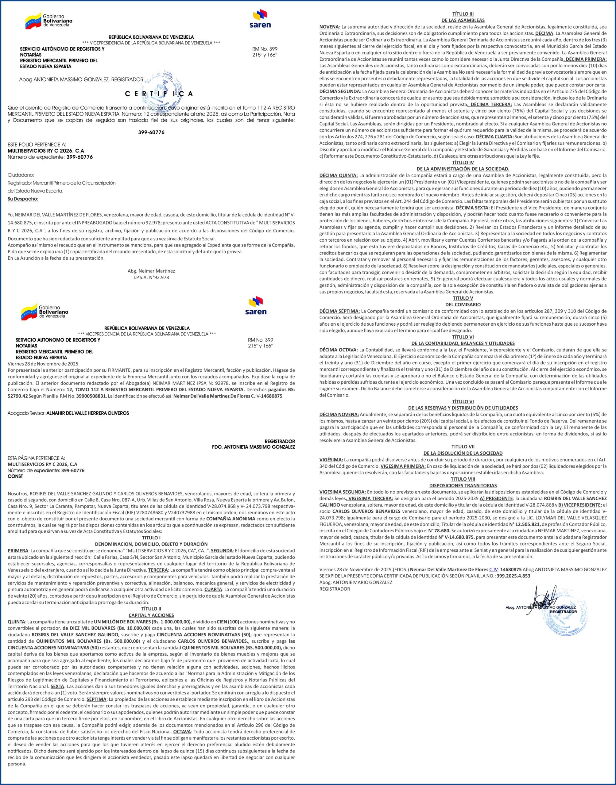 Reciente REGISTRO REMANUFACTURA ALDCAR CARRERO, F.P 02-12-25.