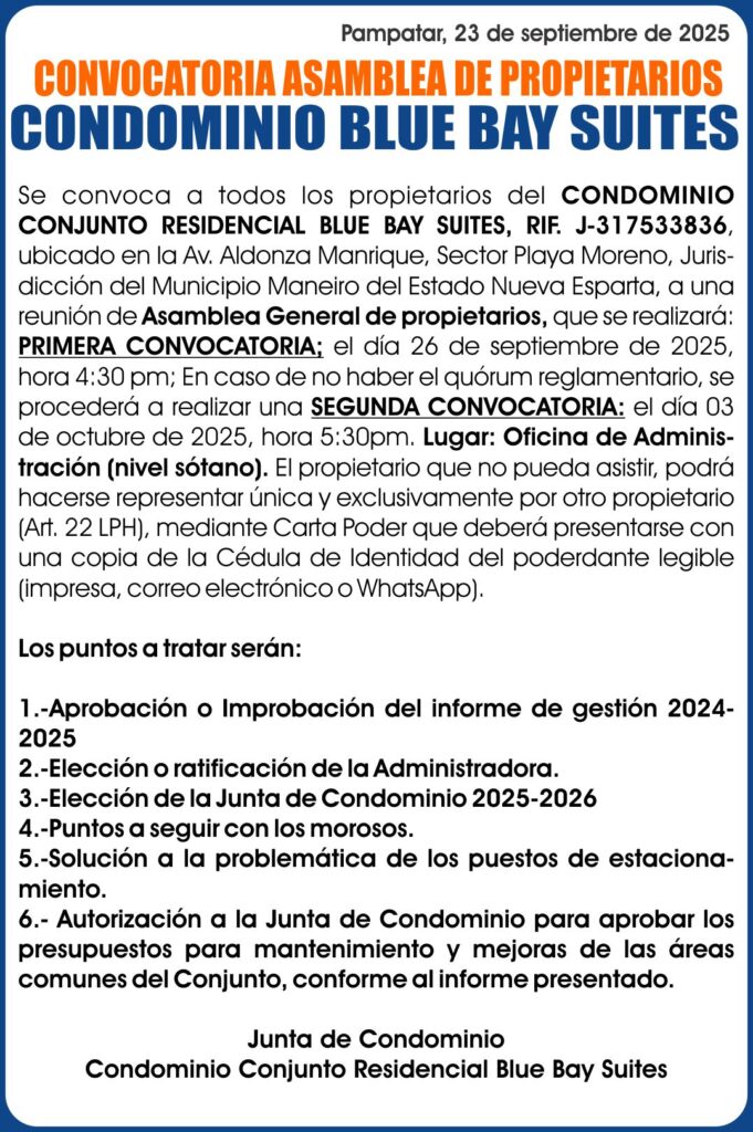 CONVOCATORIA BLUE BAY SUITE 23-09-25