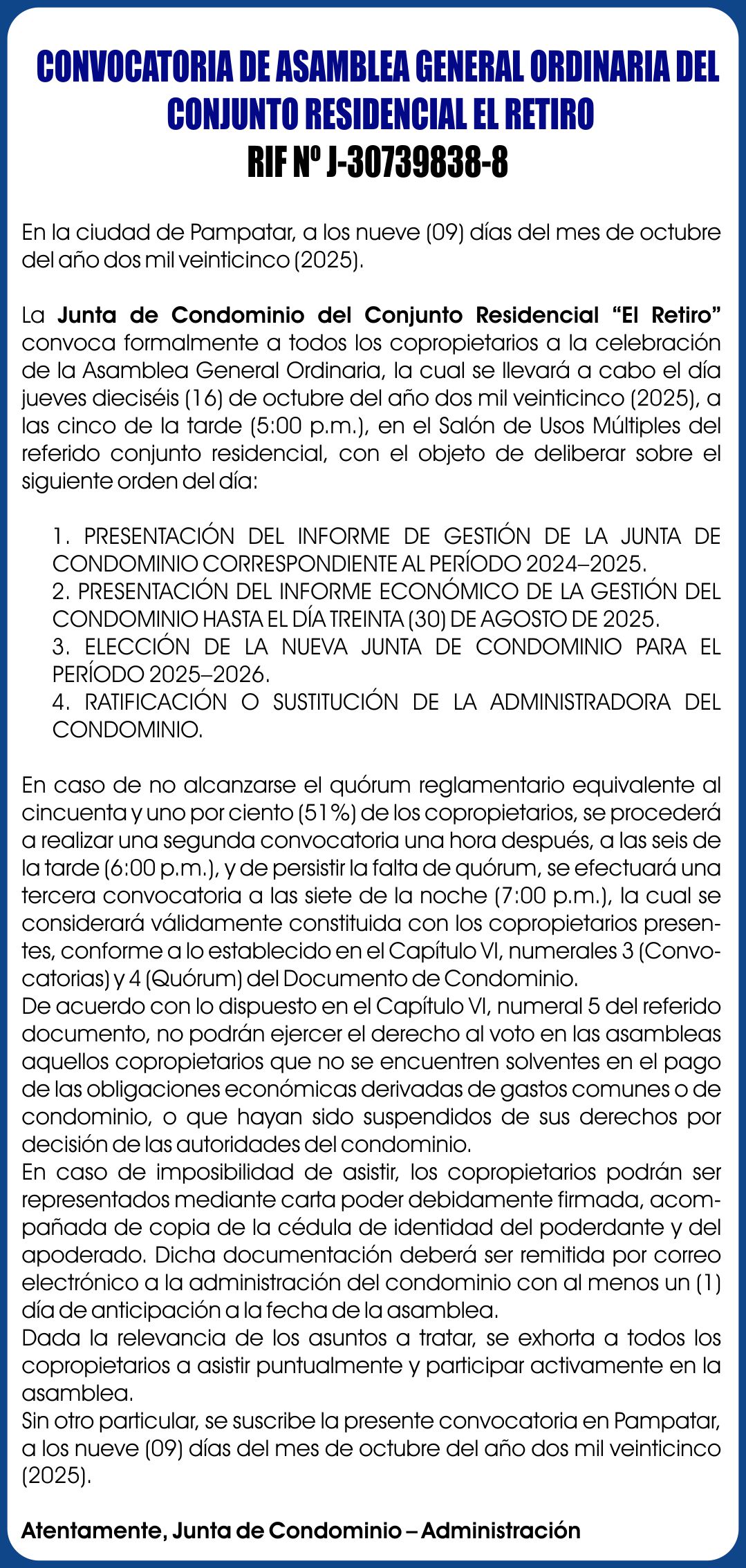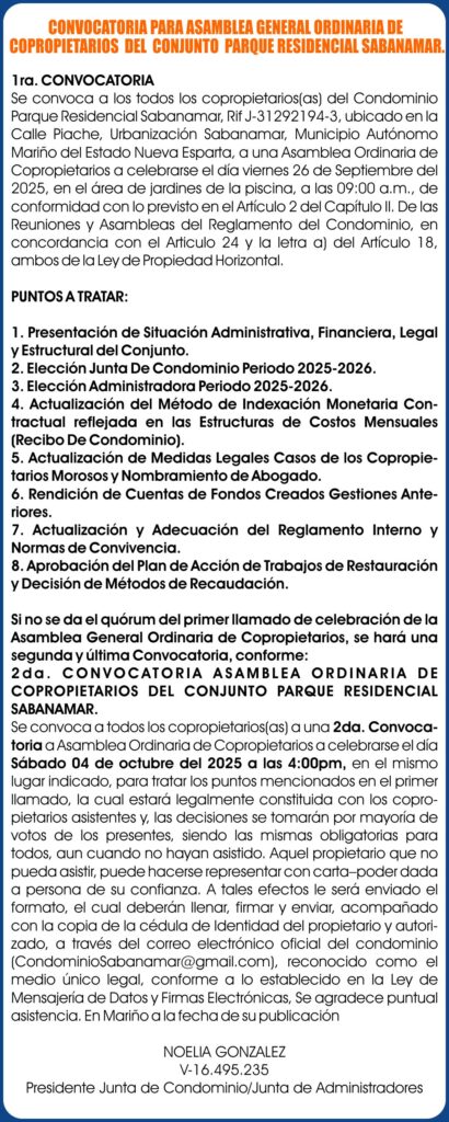 CONVOCATORIA RESIDENCIAL SABANAMAR. 23-09-25