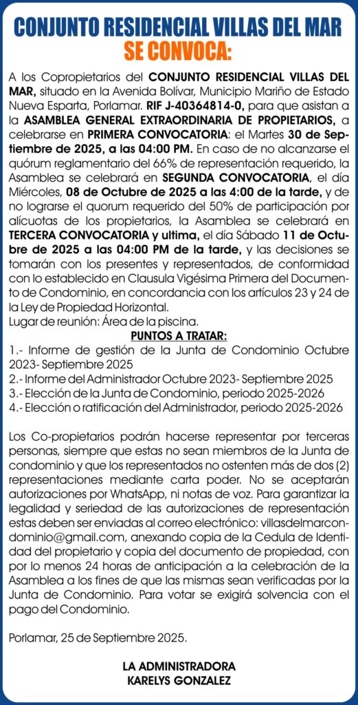 CONVOCATORIA VILLAS DEL MAR 25-09-25