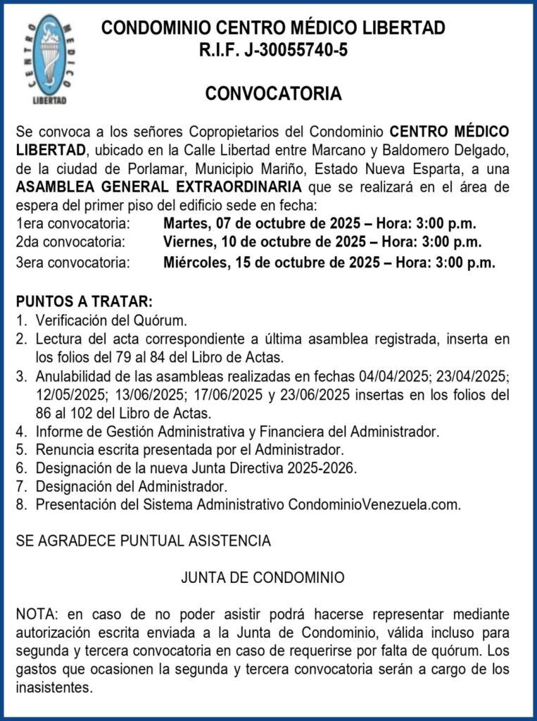 CONVOCATORIA CENTRO CLINICO LIBERTAD 02-10-25