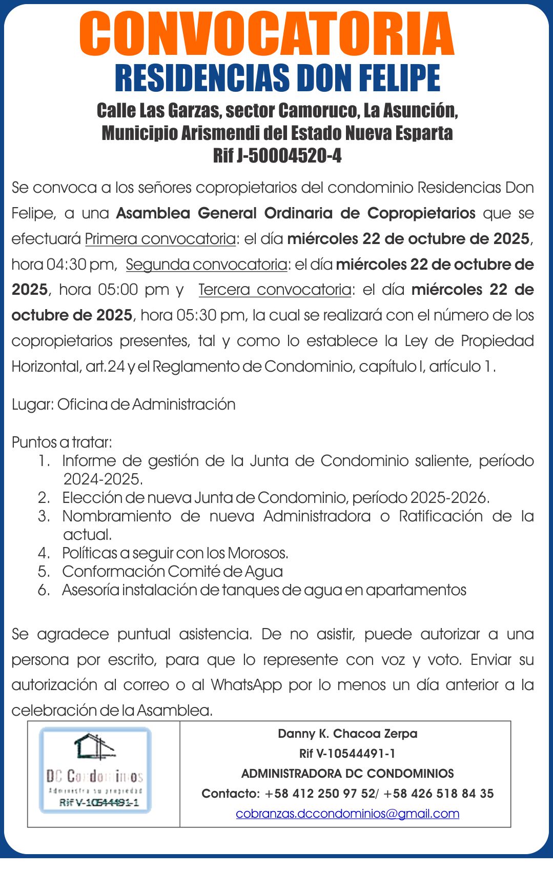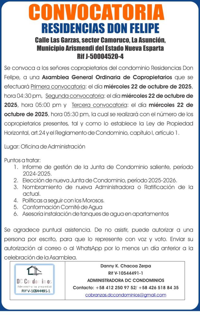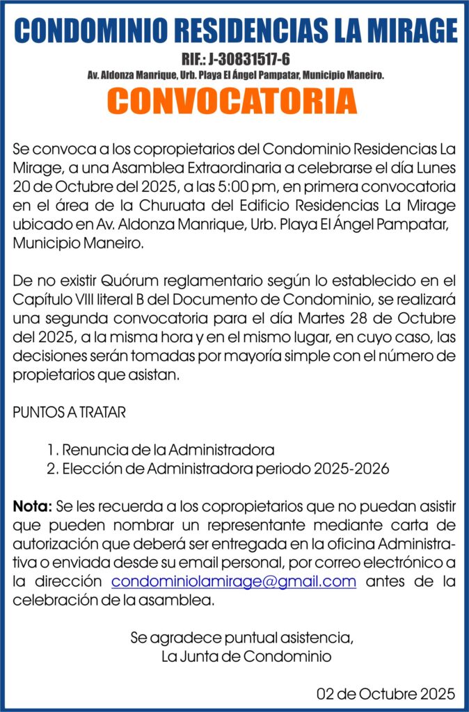 CONVOCATORIA EDIFICIO BEACH PLAZA. 23-09-25