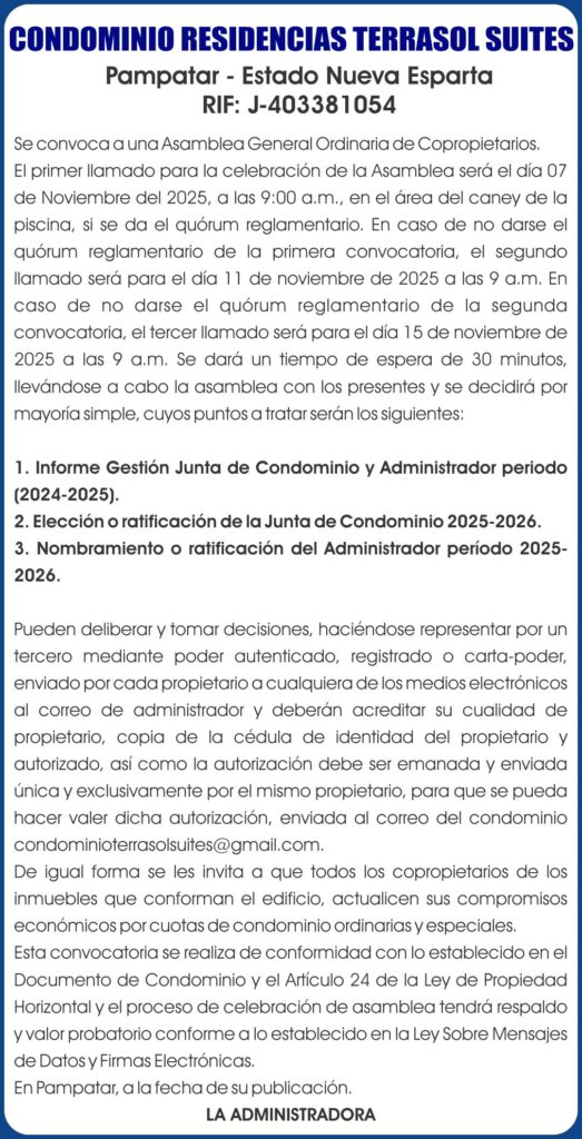 CONVOCATORIA CONDOMINIO RESIDENCIAS TERRASOL SUITES 04-11-25