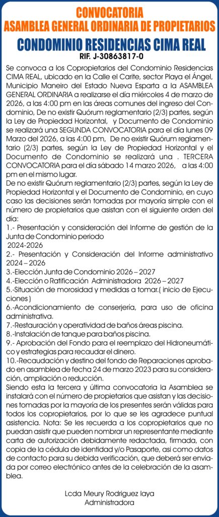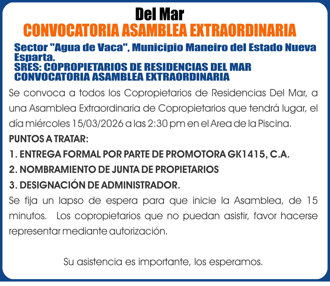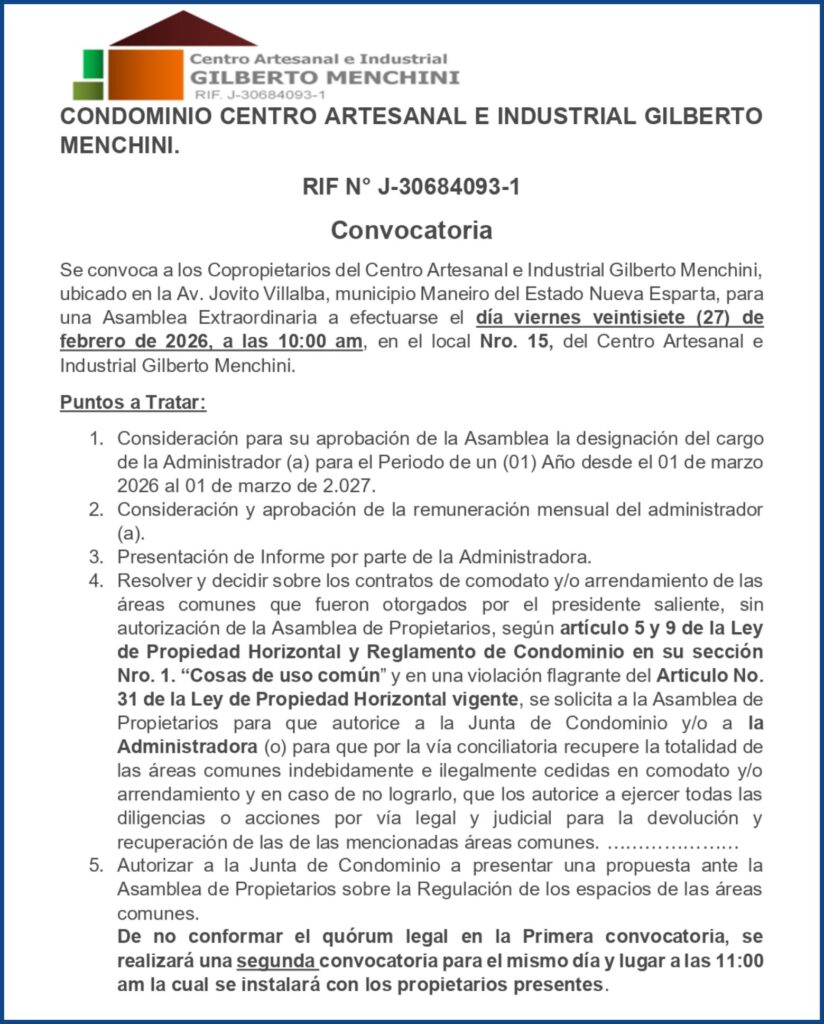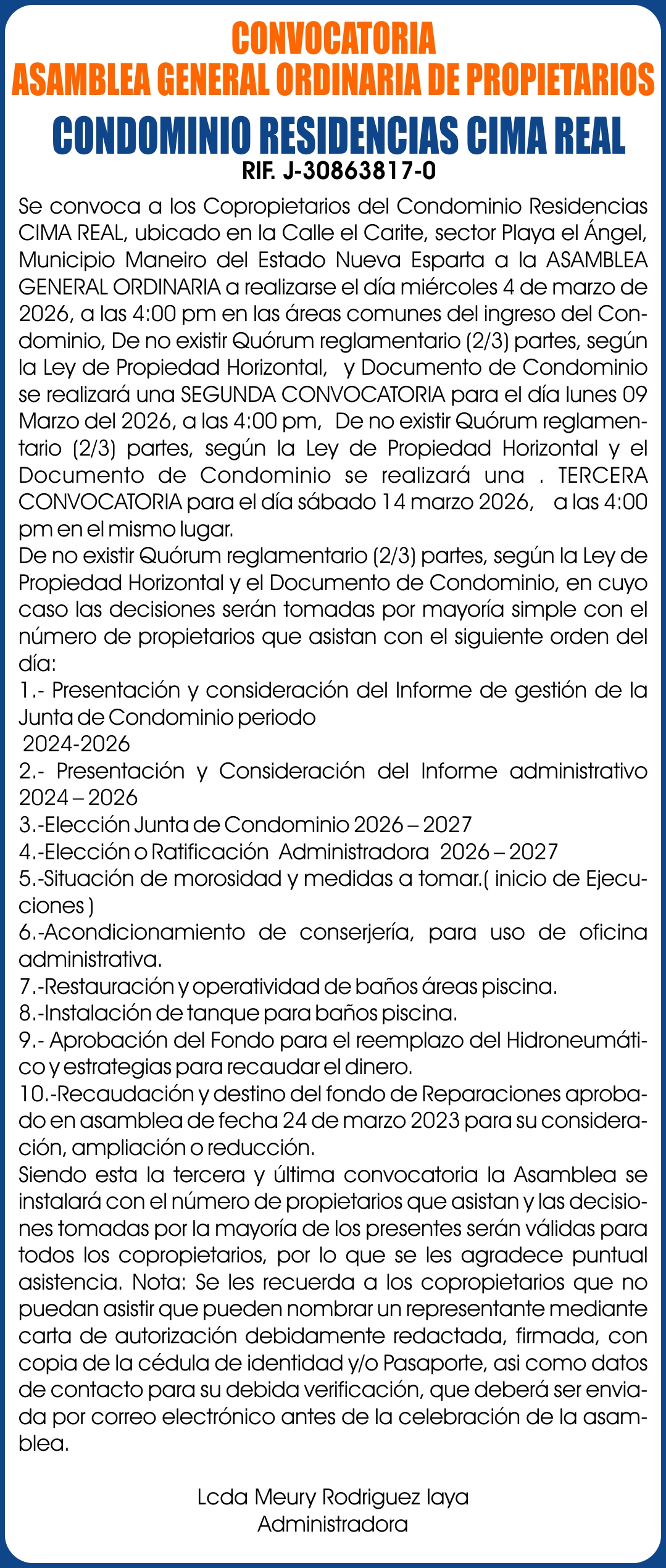 Convocatorias CONVOCATORIA CONDOMINIO-CENTRO-COMERCIAL-Y-RESIDENCIAL-COLINAS-DEL-DATIL-I-13-02-26 View Large