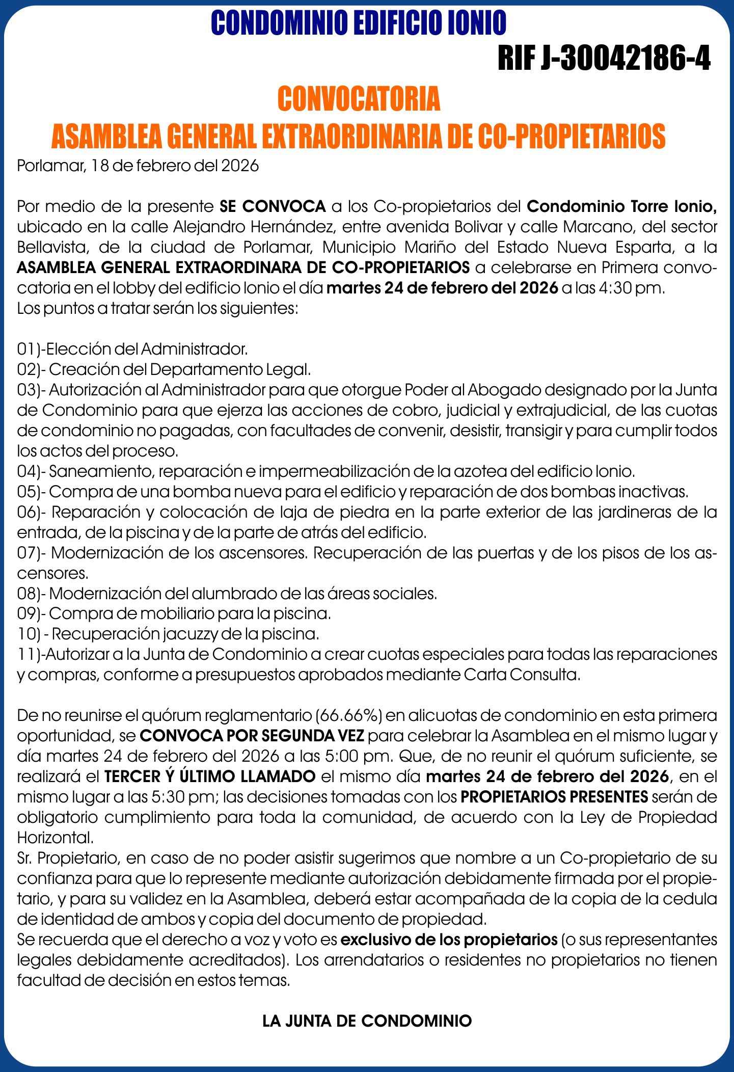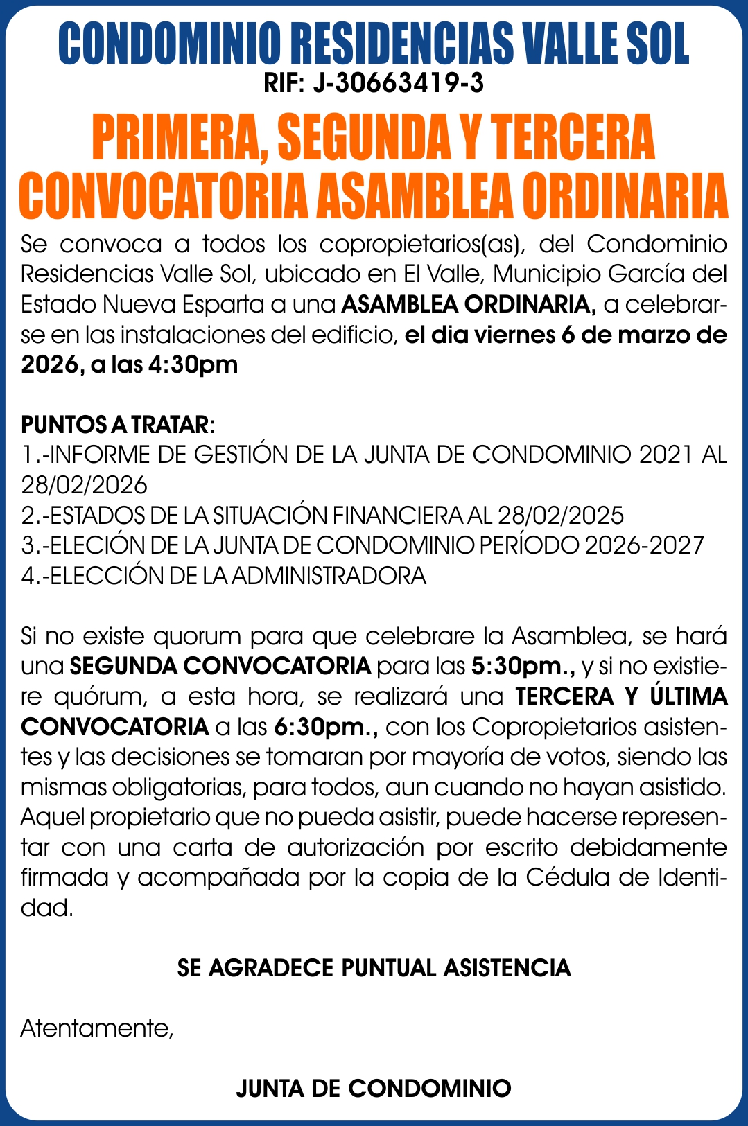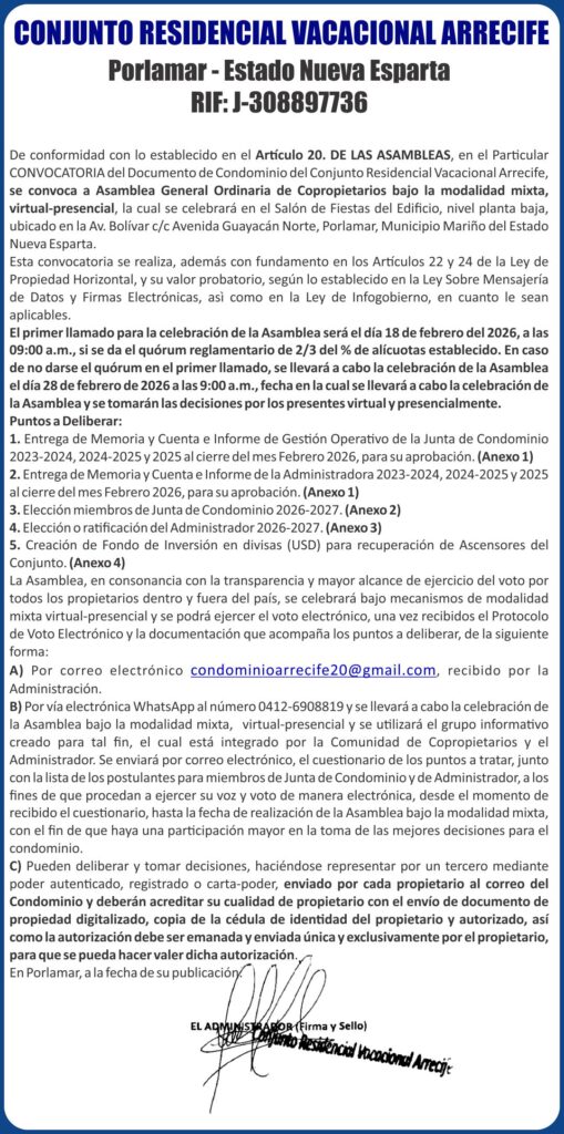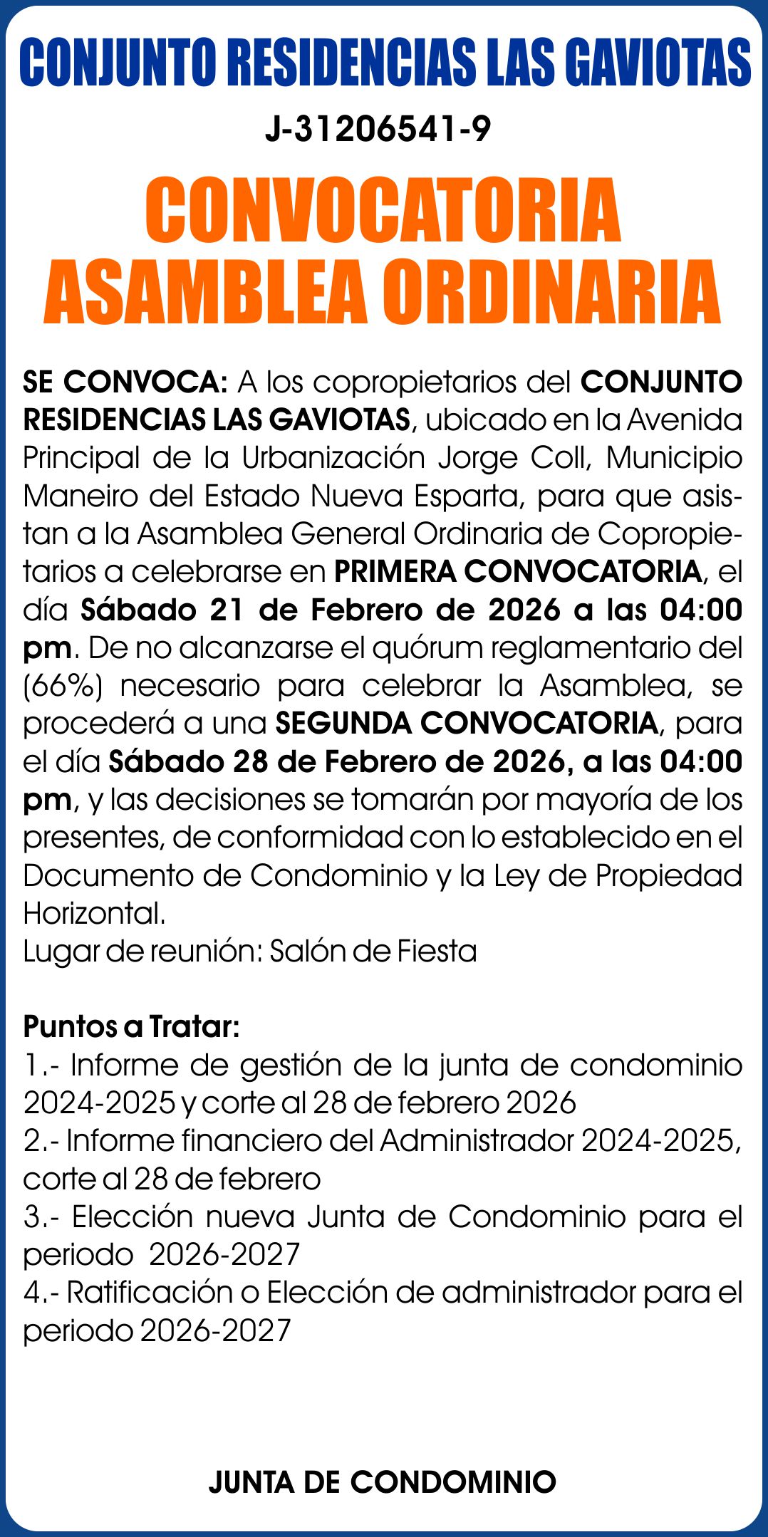 Convocatorias CONVOCATORIA CONDOMINIO-CENTRO-COMERCIAL-Y-RESIDENCIAL-COLINAS-DEL-DATIL-I-13-02-26 View Large
