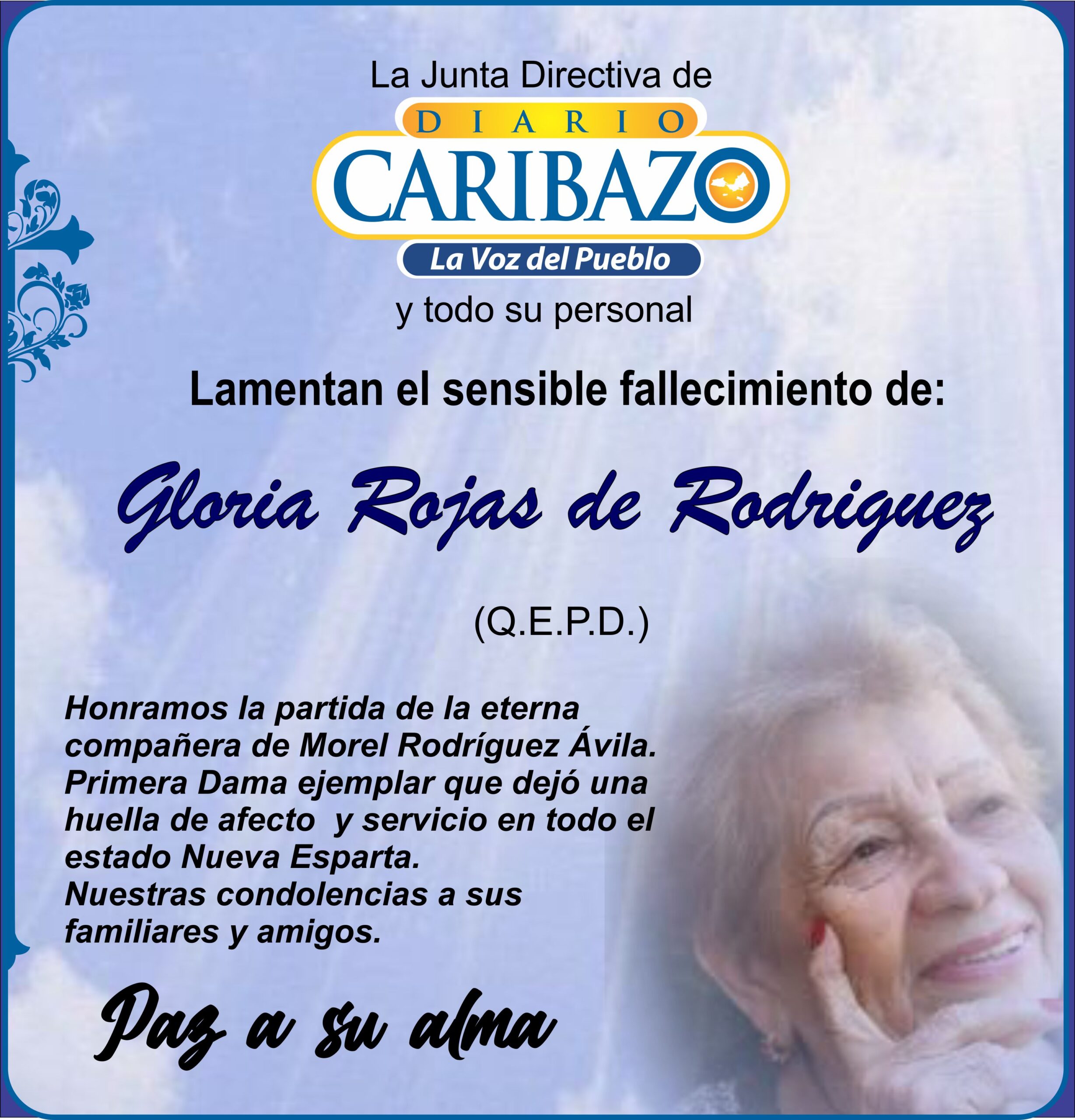 Fallece la distinguida compañera del exgobernador Morel Rodríguez Ávila