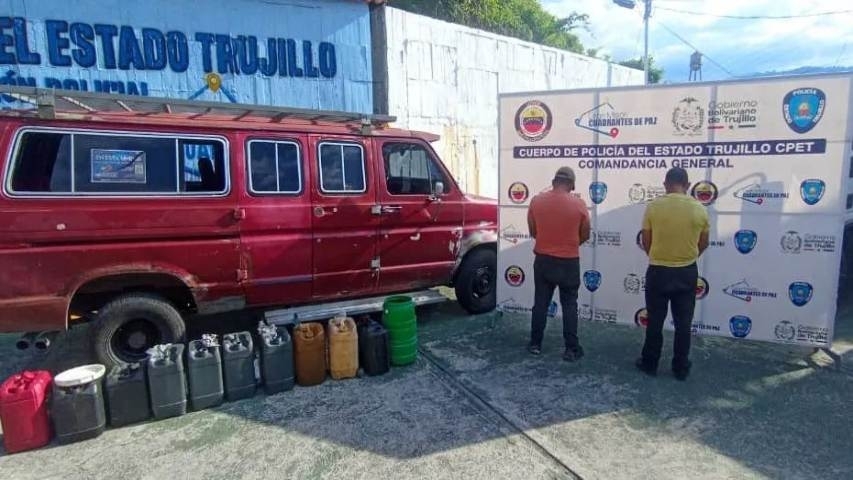 La acción fue llevada a cabo por oficiales del cuerpo de la Policía del estado Trujillo, quienes les incautaron a los dos conductores de transporte público 220 litros de gasolina guardados en recipientes plásticos dentro de depósito clandestino.